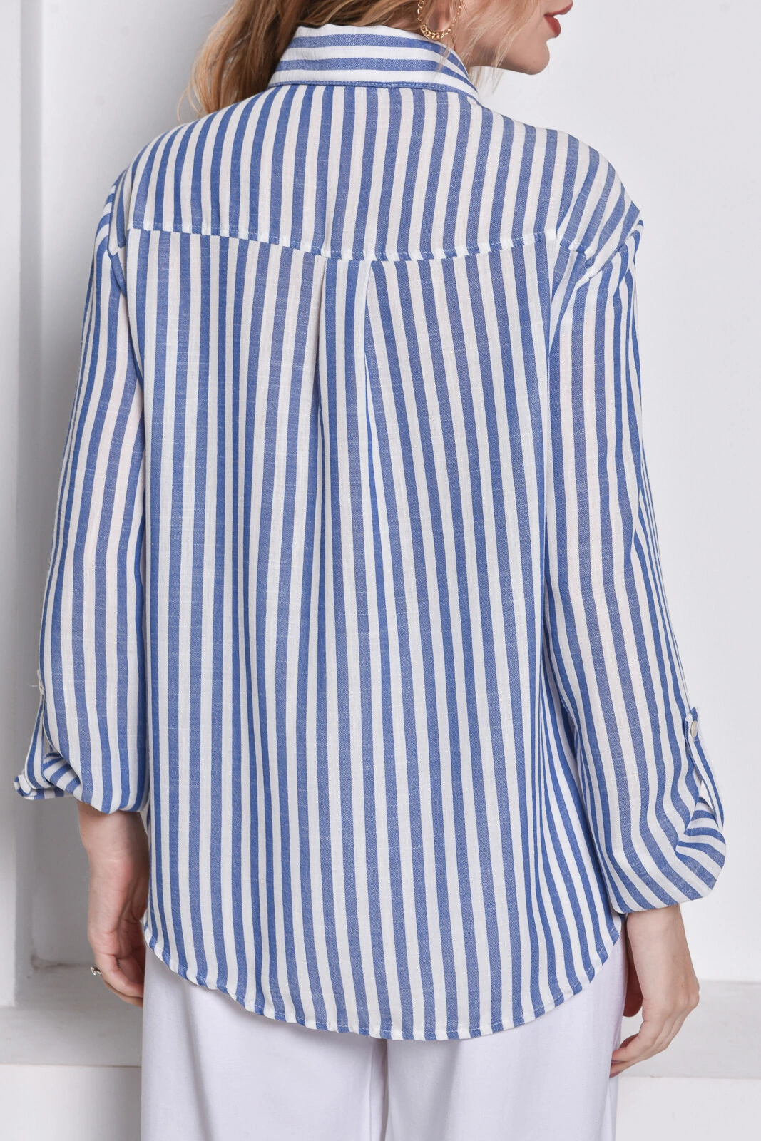 Camisa Textura Linho Listrada Azul Jeans