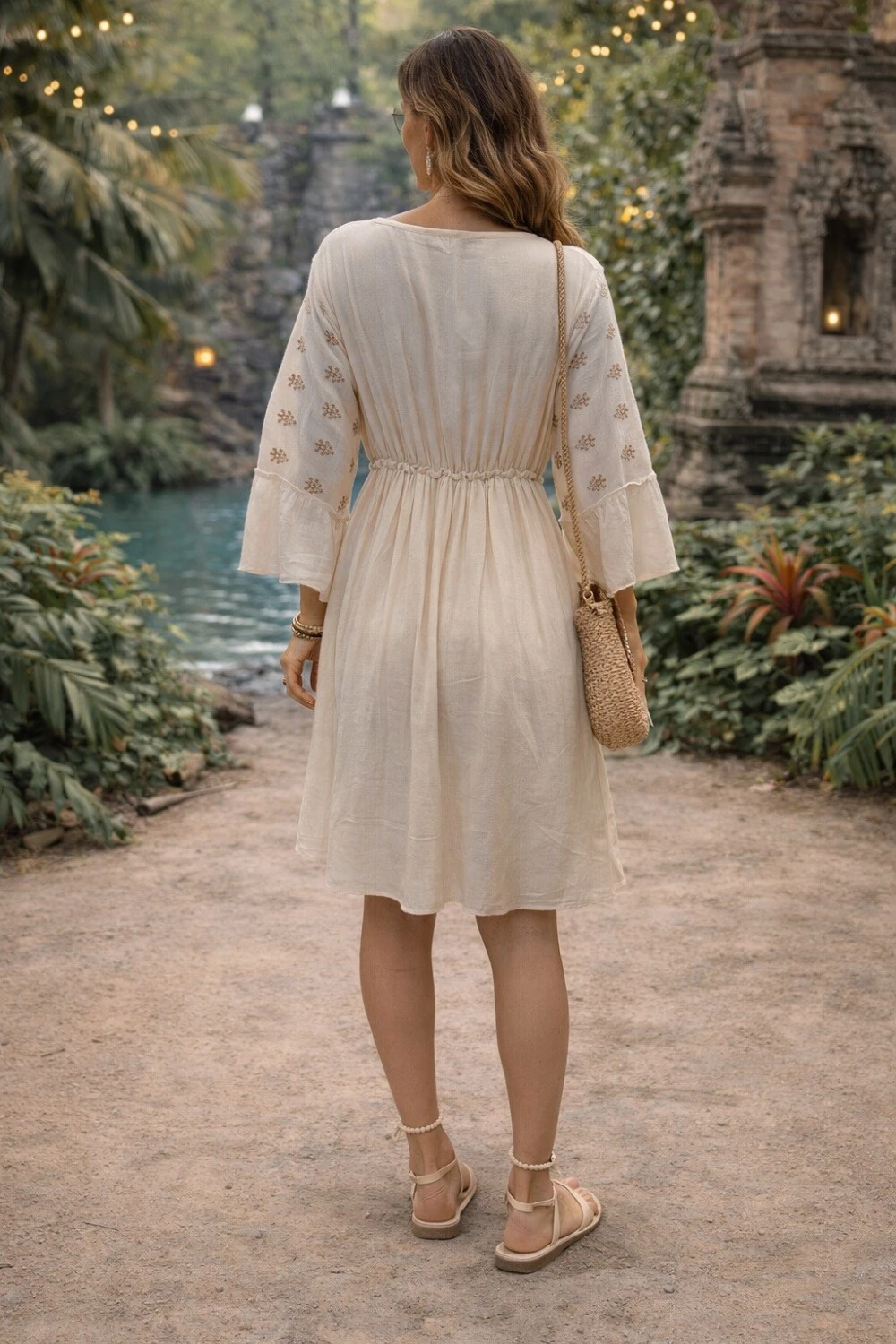 Vestido Midi Boho Off White Bordado