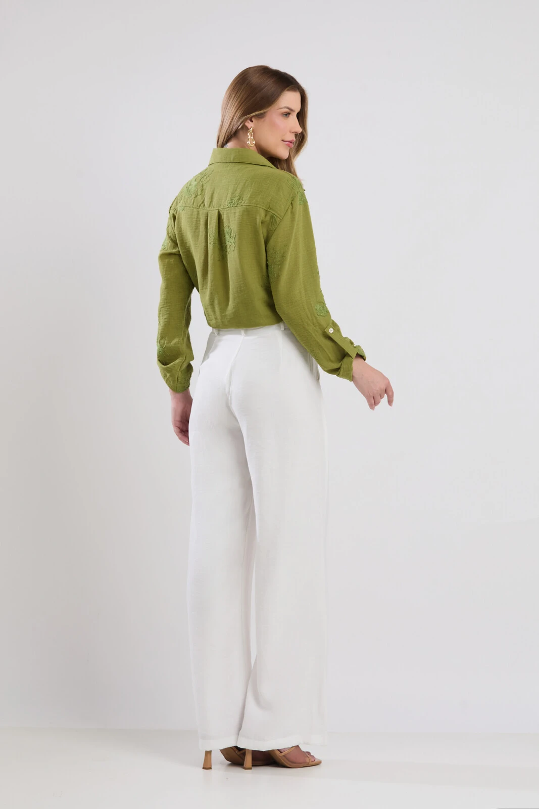 Camisa Textura Linho Listrada Floral Azul Marinho