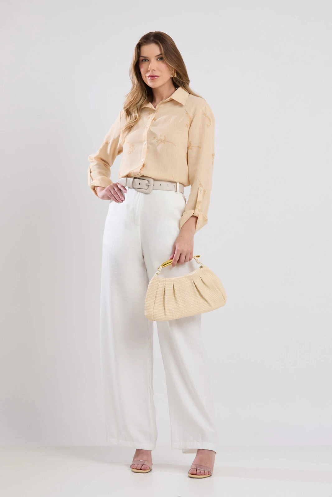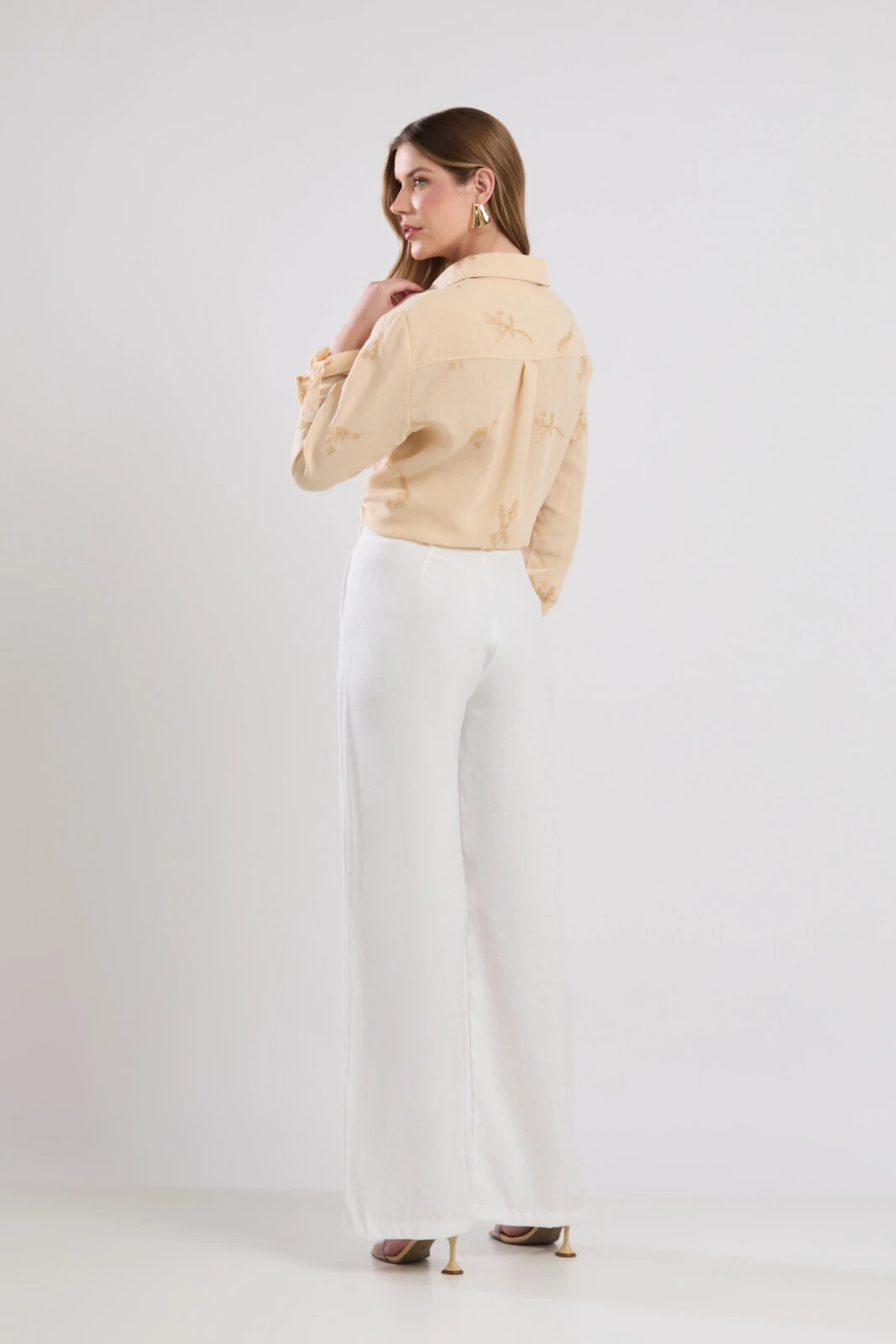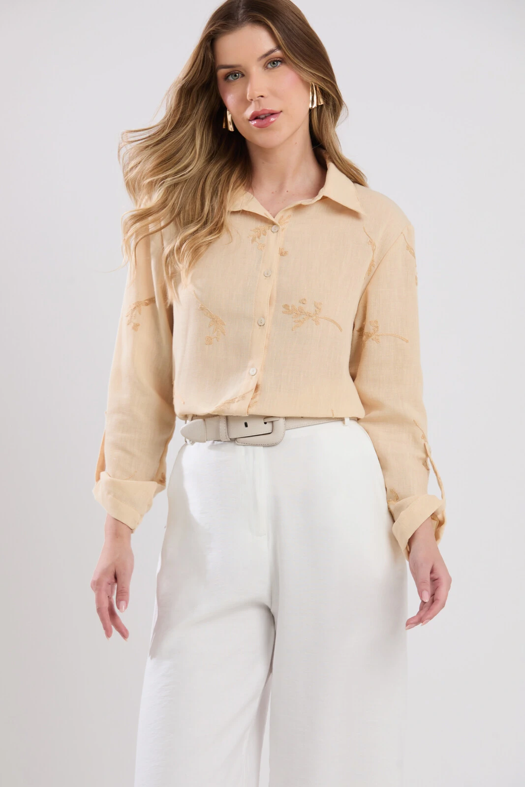 Camisa Textura Linho Listrada Floral Azul Marinho